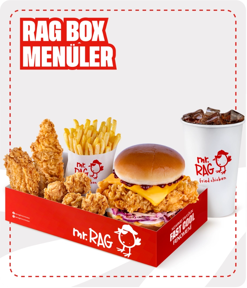 Şehrin dinamik ruhundan ilham alarak, gündelik hayatın akışı içinde, hızlı, kaliteli ve lezzetten ödün vermeyen Fast-Cool konseptiyle imza lezzetler yaratan Mr.Rag, Türkiye’nin öncü piliç markası Lezita’nın güvencesiyle hazırlanmaktadır.