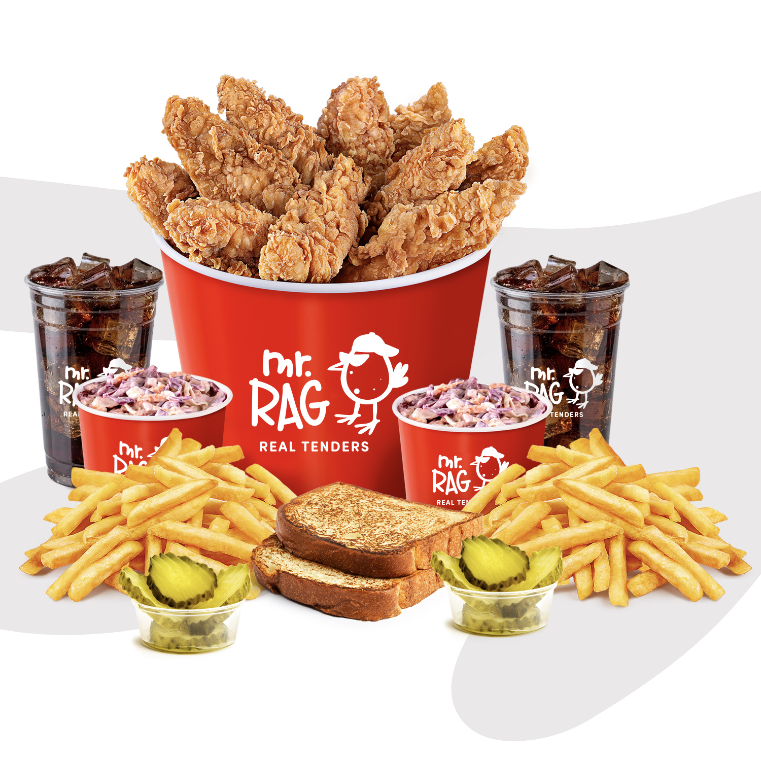 10 Real Tenders, 2 RAG Toast, 2 Coleslaw, 2 Tatlı Turşu, 2 Patates Kızartması, 2 İçecek