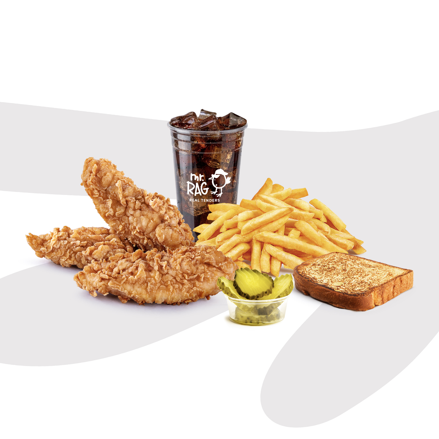 3 Real Tenders, RAG Toast, Tatlı Turşu, Patates Kızartması, İçecek